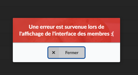 L'erreur JS dans la console du navigateur ne survient pas lorsque je clique sur un des boutons "Gestion des membres" ou "Gestion des groupes". --